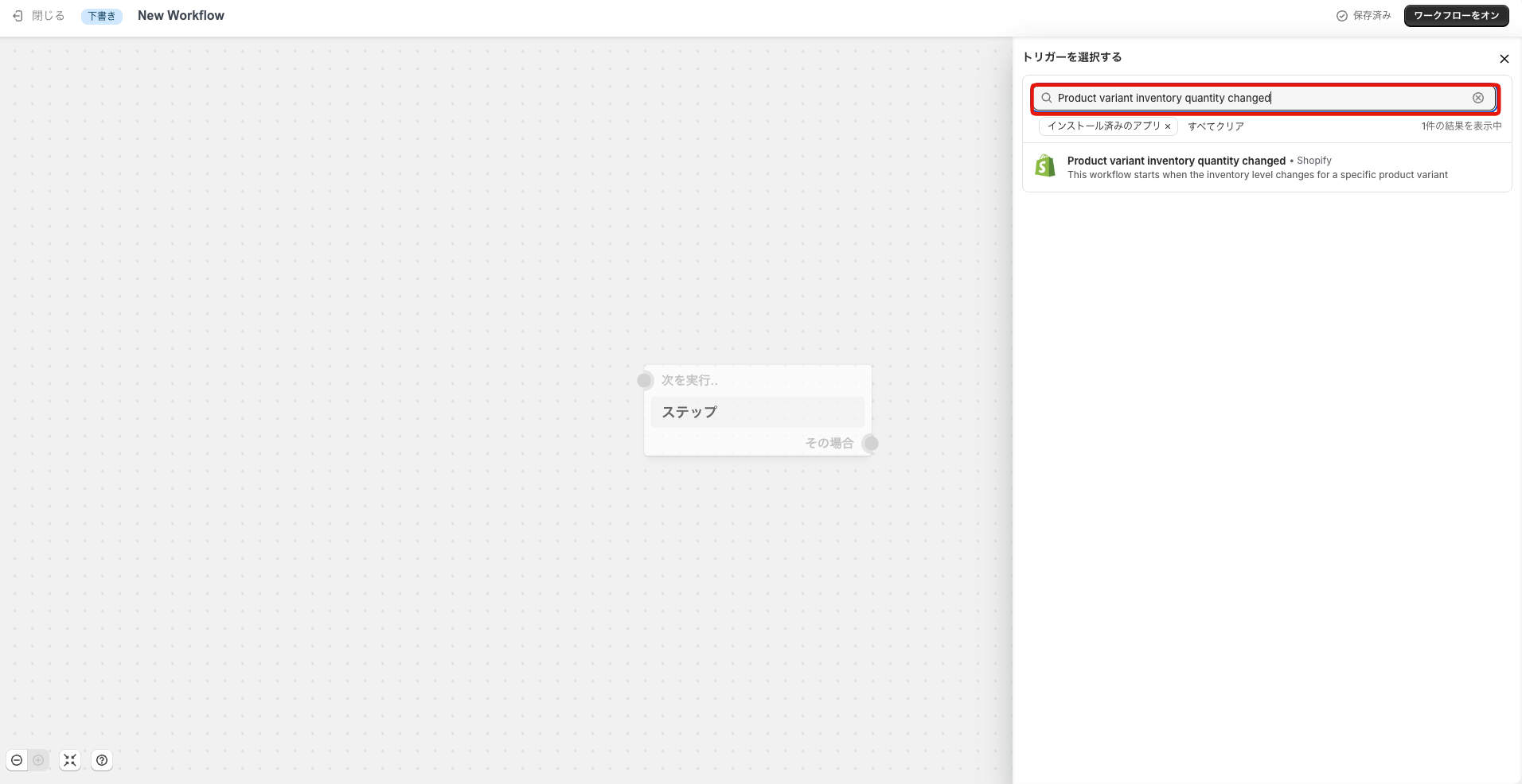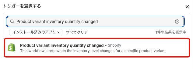 検索窓に「 Product variant inventory quantity changed」と打ち込みます。