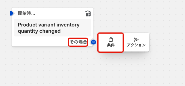 その場合という箇所を選択すると「条件」と「アクション」という項目が表示されるので「条件」を選択します。