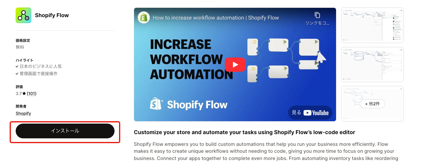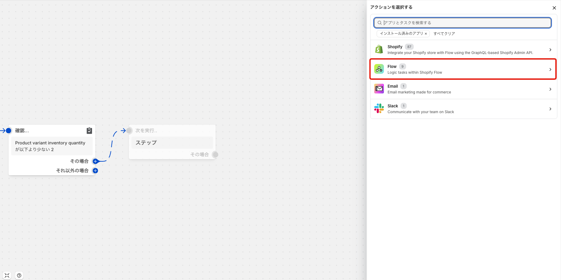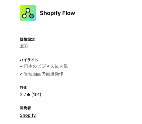 URL:https://apps.shopify.com/flow?locale=ja&st_campaign=about-app&st_source=admin-web&utm_campaign=installed&utm_source=shopify