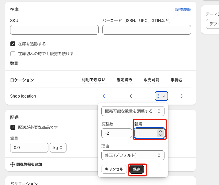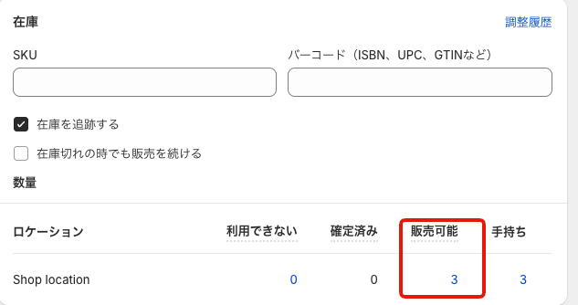 今回はテスト商品の在庫数を3個から1個に手動で減らした場合にメールが届くかを確認します。