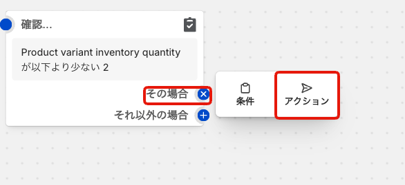 条件設定が完了したら「その場合」を選択し、「アクション」を選択します。