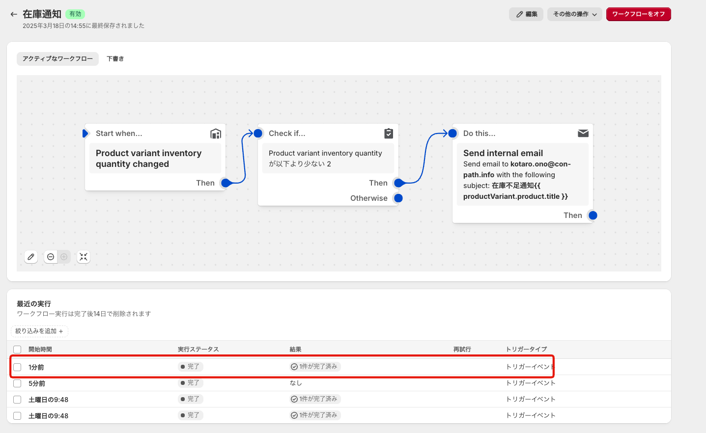 Shopify Flowを活用した「在庫不足アラートメール」は、運営者にとって非常に頼りになる仕組みです。まだ設定されていない方はぜひ、この機会に導入し、販売機会を最大化しましょう。
